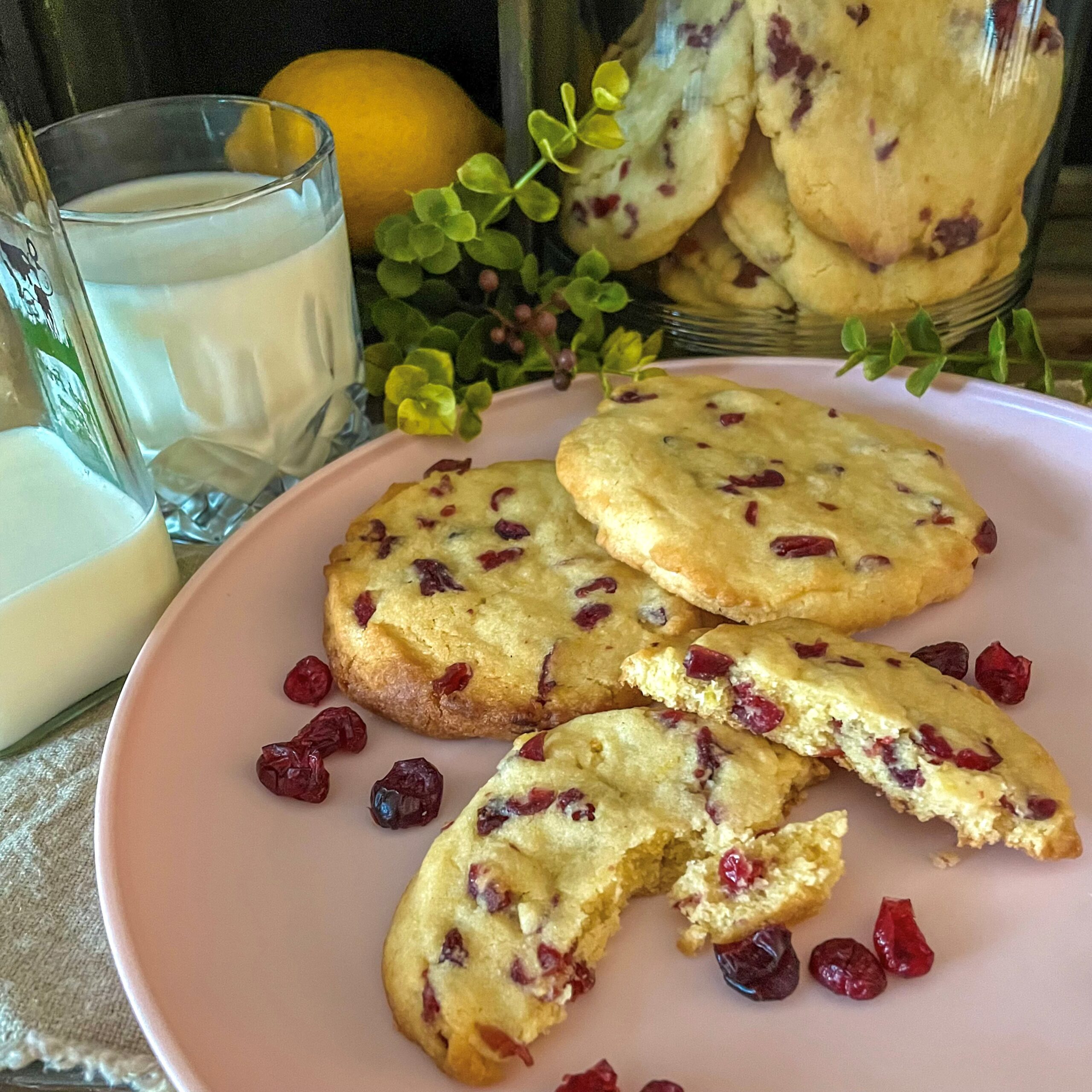 Cranberry Lemon Cookies – Experience the refreshing lemony flavor of these cranberry lemon cookies, thanks to the addition of freshly grated lemon zest! The dried cranberries add a delightful burst of tartness that perfectly complements the citrus notes. Perfect for your holiday dessert tray, or as a sweet treat to enjoy with a cold glass of milk or a lovely companion to a hot cup of your favorite tea.” $12 for 1/2 Dozen.